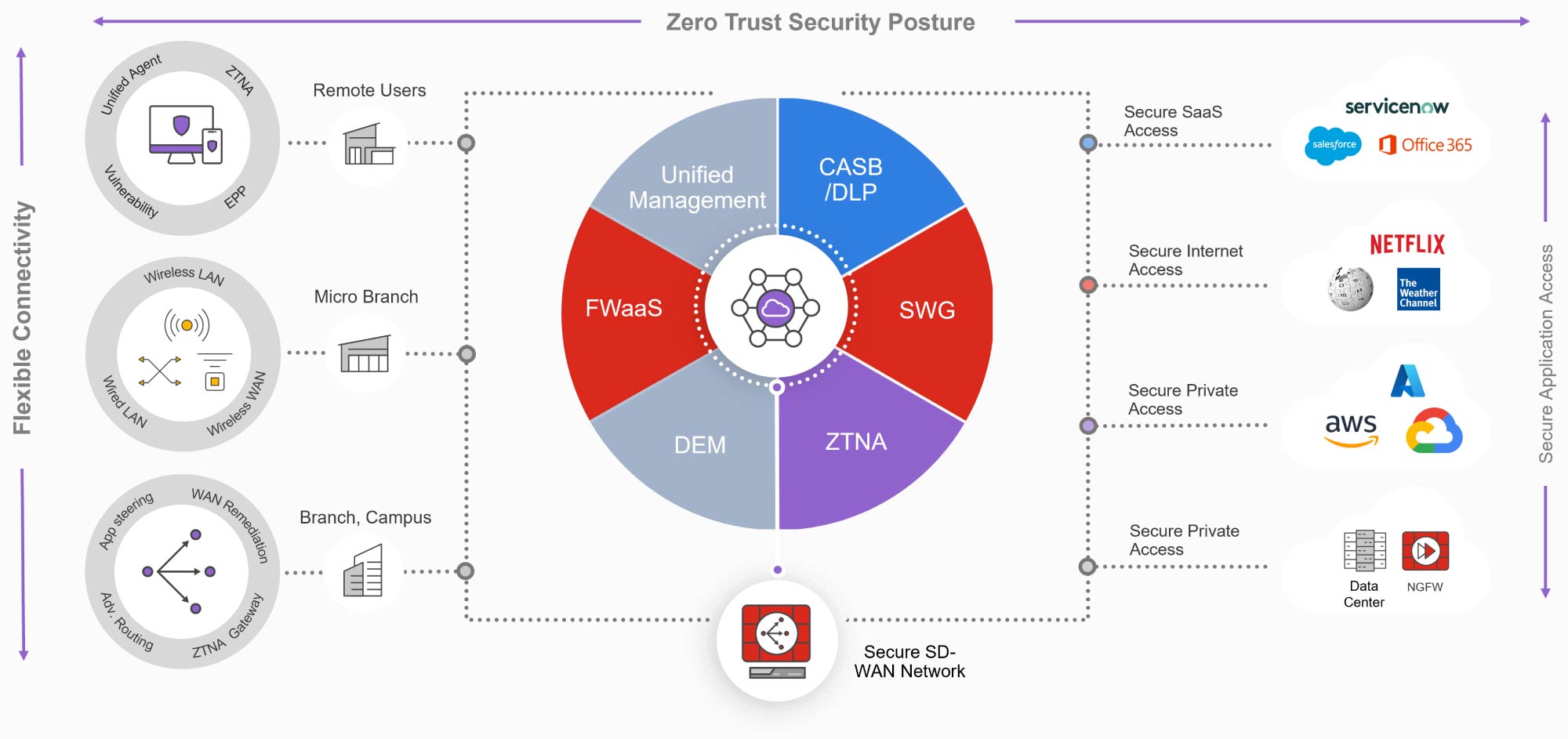רוב פתרונות ה-SASE הזמינים כיום הם חלקיים, מה שאומר שהם דורשים ממשקי ניהול וסוכנים רבים בזמן שהם מספקים נראות ומדיניות אבטחה מוגבלות. מדובר בפתרון יקר לתחזוקה, אשר יוצר פערי ניהול ואבטחה. לפורטינט יש כיום יכולת ייחודית ליצור פתרון SASE מאוחד, המופעל באמצעות מערכת הפעלה, ממשק ניהול, סוכן נקודת קצה ומאגר נתונים אחוד, תוך שילוב אמיתי של SD-WAN ו-SSE. פתרון Fortinet Unified SASE מספק את כל תכונות הליבה של SASE; את הקישוריות הגמישה ביותר בתעשייה (כולל נקודות גישה ומתגים); ושילובי AI חכמים עם ניהול מאוחד, ניטור חוויה דיגיטלית (DEM) מקצה-לקצה ואכיפת מדיניות אבטחה רציפה עם zero trust באתרים המקומיים ובענן.