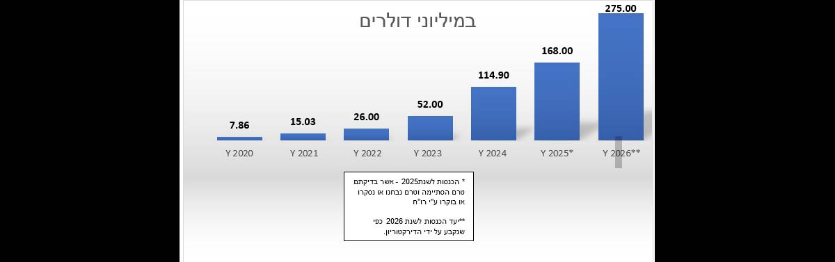 נקסט ויז'ן מערכות מיוצבות בע"מ, חברת צמיחה טכנולוגית המפתחת, מייצרת ומשווקת פתרון צילומי, יום ולילה מיוצב לכלים קרקעיים ואוויריים כדוגמת מיקרו ומיני מזל"טים ורחפנים, בעלות יחס משקל/גודל וביצועים מהטובים בעולם, פרסמה את יעד הצמיחה לשנת 2026; יעד הצמיחה השנתי שהציב דירקטוריון החברה לשנת 2026 יעמוד על סך של 275 מיליון דולר, המשקף צמיחה של מעל 64% מהכנסות החברה בשנת 2025 (אשר טרם בוקרו או סוקרו על ידי רואה החשבון של החברה). הכנסות אלו, נכון ל-31 בדצמבר 2025, נאמדות בסך של כ-168 (כאשר יעד ההכנסות עמד על כ- 160 מיליון דולר) ומבטאות שיעור צמיחה הגבוה מ-46% מהכנסות החברה ממכירות בשנת 2024.