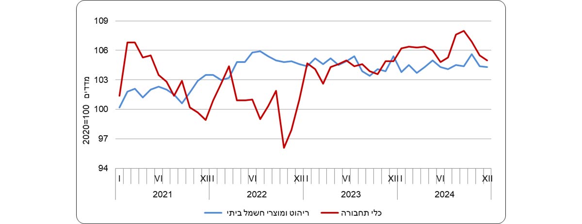 ברבעון האחרון של 2024 ניכרת ירידה במדדי המחירים של רוב מרכיבי היבוא.