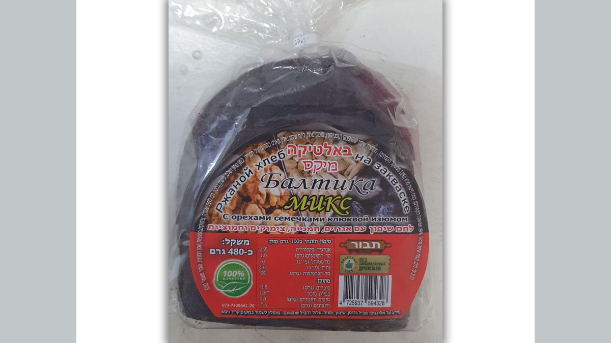 מפעל מאפיית תבור טי.בי.אר יצור ושיווק קורא להחזרת המוצר לחם שיפון עם אגוזים, חמנייה, צימוקים וחמוציות באלטיקה מיקס.