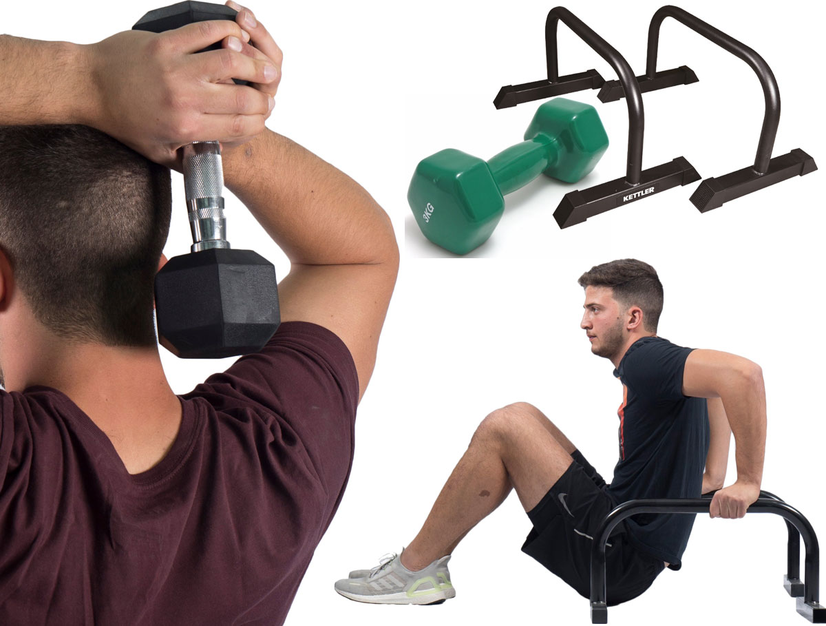 תרגיל 3: כפיפות יד אחורית עם משקולות/גומייה