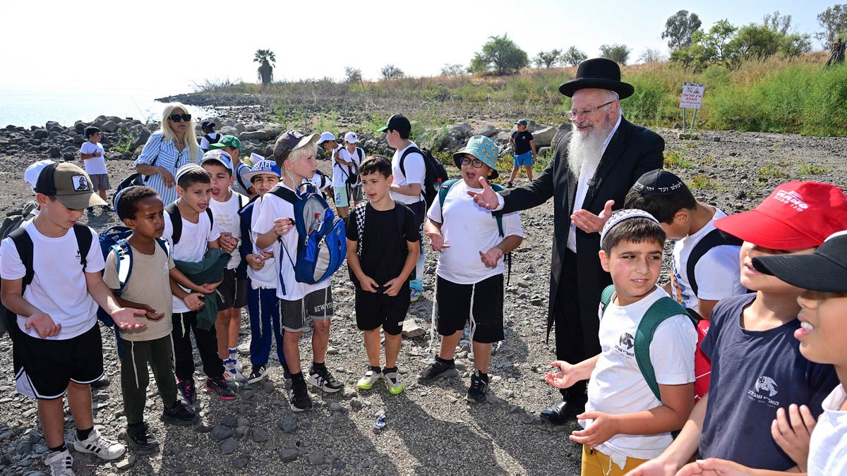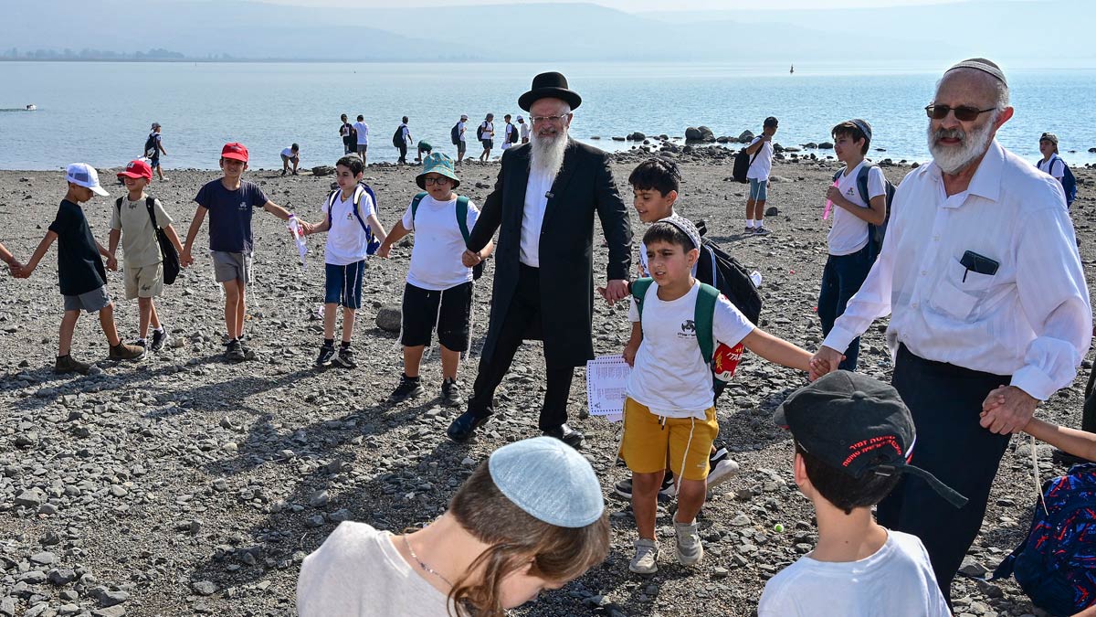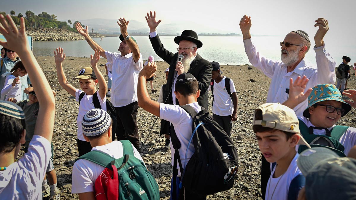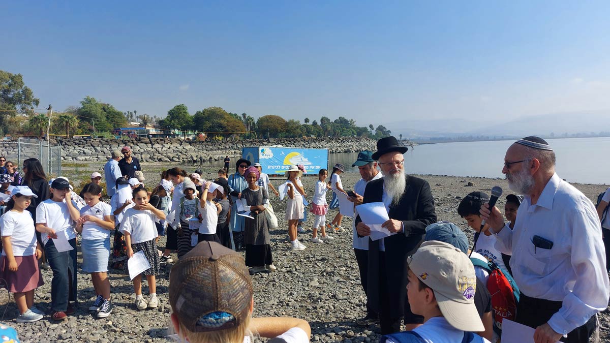 חוף מפרץ אמנון של איגוד ערים כינרת אירח תפילה המונית להורדת גשם בהשתתפות מעל 100 תלמידים ומורים מבי"ס 'הארי' בצפת, בליווי והדרכת הרב שמואל אליהו רבה של העיר צפת וחבר הרבנות הראשית.