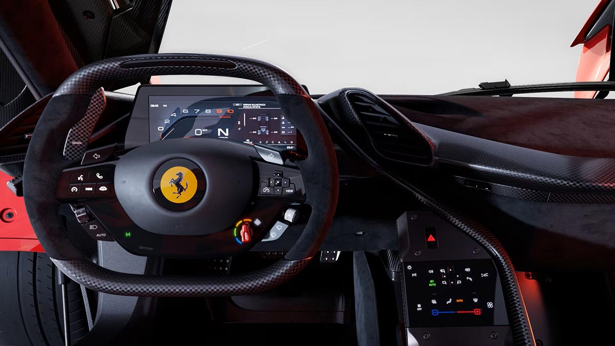 למכונית העל החדשה, שהיא הראשונה בסדרת מכוניות העל של היצרן מאז ה לה־פרארי ב־2013, מנוע היברידי מלא בנפח שלושה ליטרים ושישה צילינדרים, המייצר הספק כולל של 1,200 כוחות סוס. המנוע מבוסס על הארכיטקטורה שבה משתמשת פרארי באליפות העולם במרוצי סיבולת, שם ניצחה בשנתיים האחרונות.