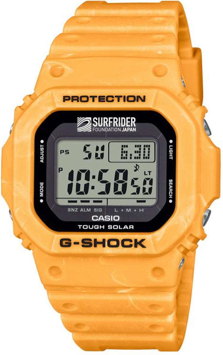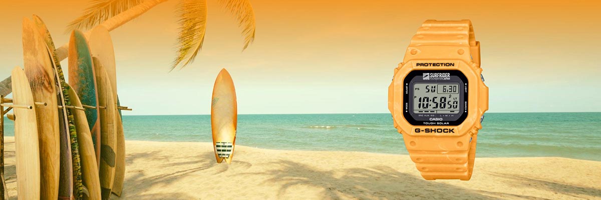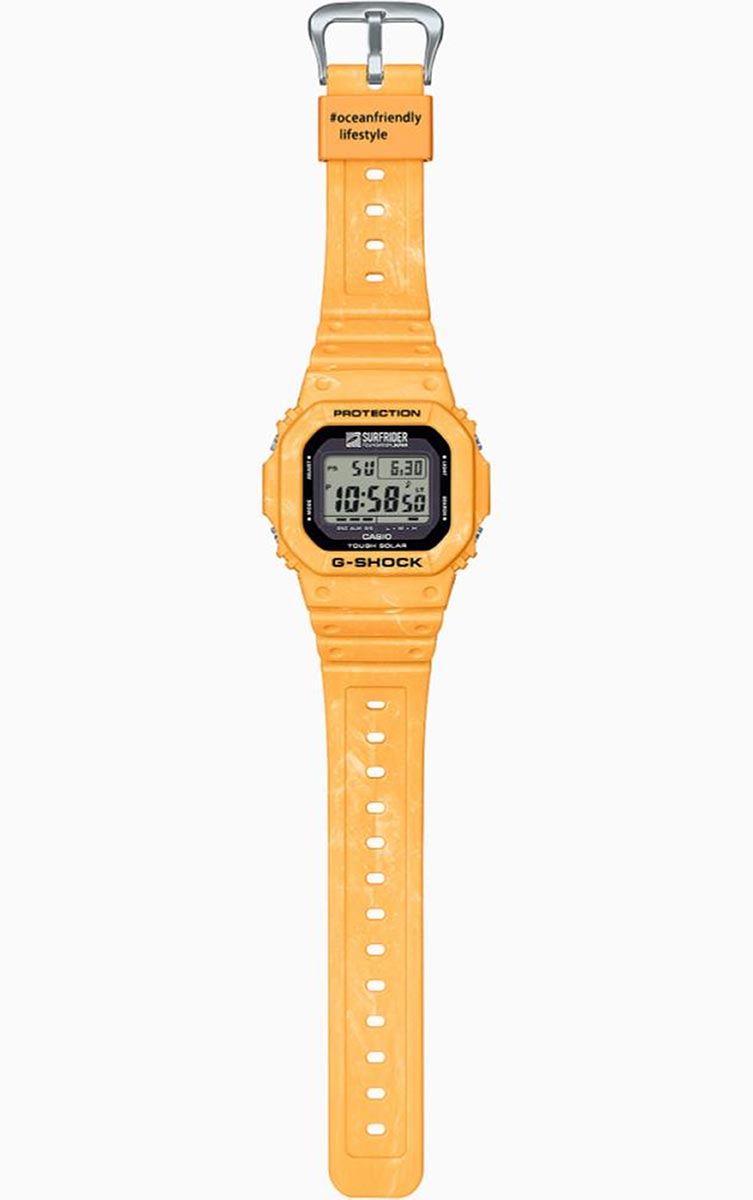 מאז סוף שנות ה-90 יוצר G-SHOCK דגמים מיוחדים בשיתוף ארגונים סביבתיים הפועלים לשמירה על הטבע והים. כעת, במסגרת שיתוף פעולה מיוחד עם,Surfrider Japan המותג משיק שעון העשוי משרף ביולוגי, ומבטא את ערכי הקיימות והחיבור לאוקיינוס. העיצוב שואב השראה מרגע הזריחה מעל הגלים, ומביא לידי ביטוי את המפגש שבין אור ראשון לבין עוצמת הים. גוף השעון נצבע בטכניקת mixed-color היוצרת מרקם ייחודי המזכיר את זרמי הים והשמש. על הרצועה מופיע ההאשטאג #oceanfriendlylifestyle, ועל הלוח והגב מופיע לוגו הקרן, כסימן לשיתוף הפעולה הייחודי ולתמיכה בה. האריזה עשויה מחומרים ממוחזרים ומשלימה את השפה הסביבתית של המהדורה.