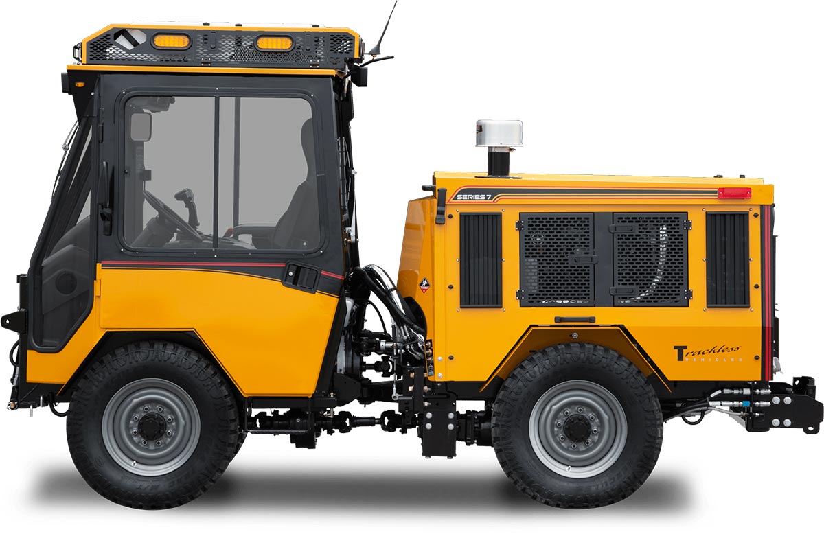 חברת טרקלס (Trackless Vehicles) מציגה את MT7, טרקטור מפרקי ורסטילי שמיועד לעבודה עירונית ולתחזוקת נוף כל השנה. היצרנית הקנדית מתארת אותו ככלי ל־365 ימים בשנה, עם יותר מ־30 אביזרים אפשריים, ממפלסי שלג ומפוחים, דרך מטאטאים, כרסומות אספלט ומכסחות דשא ועד טועני עלים ומגרסות גזעים.