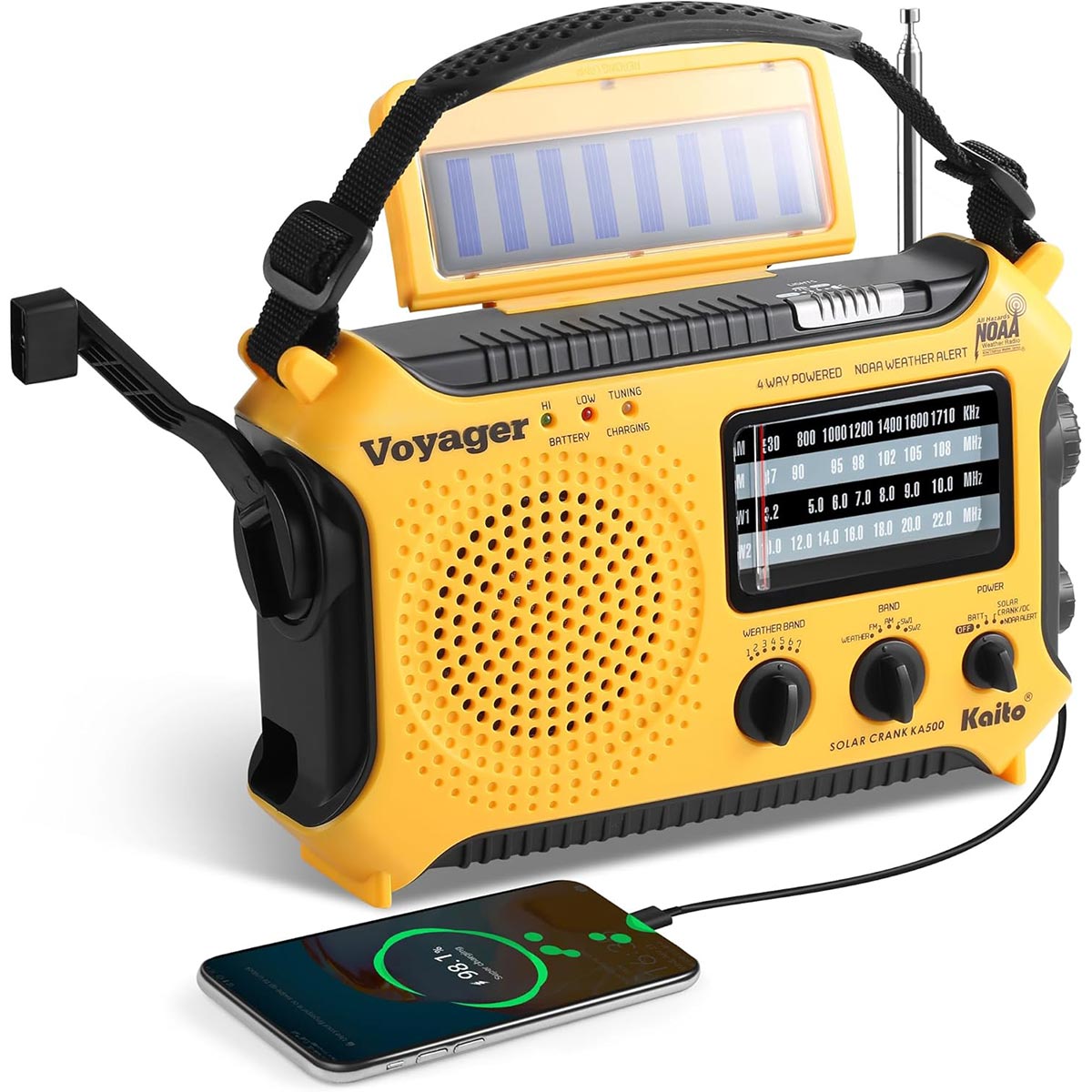 KA500 מבית קייטו עטוף בגומי עמיד ובעל שלדת פלסטיק ABS מחוזקת. הוא מתפקד גם לאחר נפילות קשות. יש לו חמש דרכי טעינה, כולל שקע קיר, סוללות AA ולוח סולרי. עם אנטנה טלסקופית, קליטת SW (שידור גל קצר) מרחבי העולם ותאורת חירום, הרדיו עמיד מאוד, אך הסוללה קטנה יחסית (600 מיליאמפר־שעות בלבד).