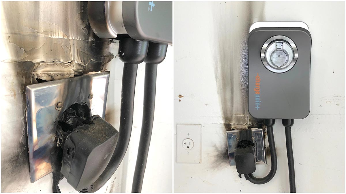 עמדת טעינה ביתית מסוג צארג'פוינט (ChargePoint) חוברה למעגל ייעודי של 50 אמפר בלוח חשמל חדש, תוך שימוש בשקע סטנדרטי מהסוג המקובל לתנורי בישול חשמליים. שקע זה התברר כחוליה החלשה במערכת: במהלך טעינת רכב מבחן הוא התחמם יותר מדי, נמס ומילא את המוסך בעשן. רק לאחר מכן ניתק המפסק האוטומטי את הזרם. זה בדיוק סוג הסיכון שמפניו מזהירים גורמי בטיחות גם בקשר לשימוש בכבלי הארכה לטעינה ברמה הראשונה בלבד.