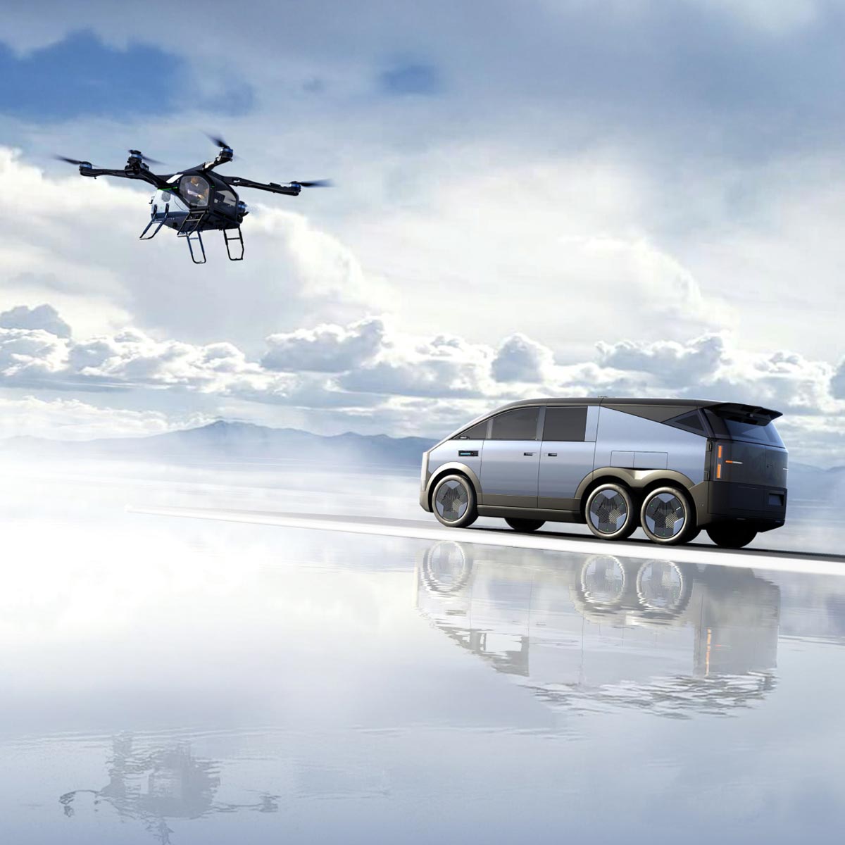 הרכב בשם "כלי רכב אווירי־יבשתי" (Land Aircraft Carrier) מבוסס על עקרון מודולרי ייחודי: כלי רכב חשמלי דו־שלבי הכולל יחידת קרקע ויחידת טיסה מתנתקת. החלק הקרקעי בנוי בתצורת שלושה סרנים ושישה גלגלים עם הנעה לכל הגלגלים והיגוי אחורי, המעניקים לו כושר תמרון גבוה ויציבות גם בתנועה עירונית. הוא מסוגל לשמש כרכב עצמאי לכל דבר, ומשמש כבסיס טעינה ליחידת הטיסה החשמלית בין המראות.