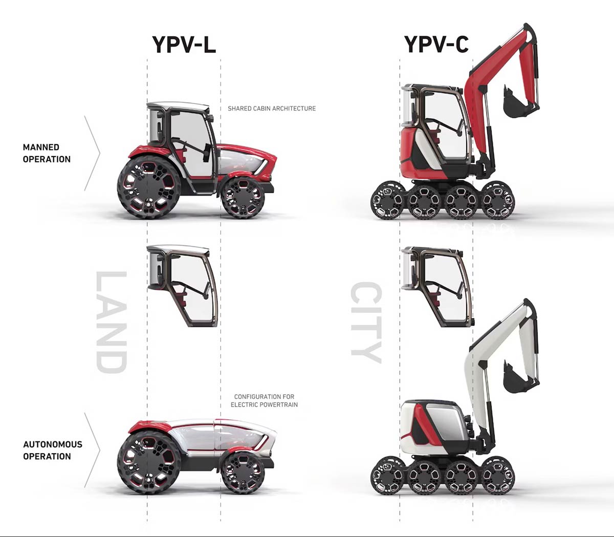 יאנמר (Yanmar) חשפה סדרת קונספטים עיצוביים המדגימים את חזונה לציוד חקלאי ובנייה של העתיד, עד שנת 2035. הדגמים כוללים מחפרון וטרקטור עם תא נהג משותף, עם אפשרות להפעלה אוטונומית מלאה לאחר הסרת הקבינה. לשניהם הנעה חשמלית ויחידת טעינה ניידת שפותחה במיוחד בשבילם.