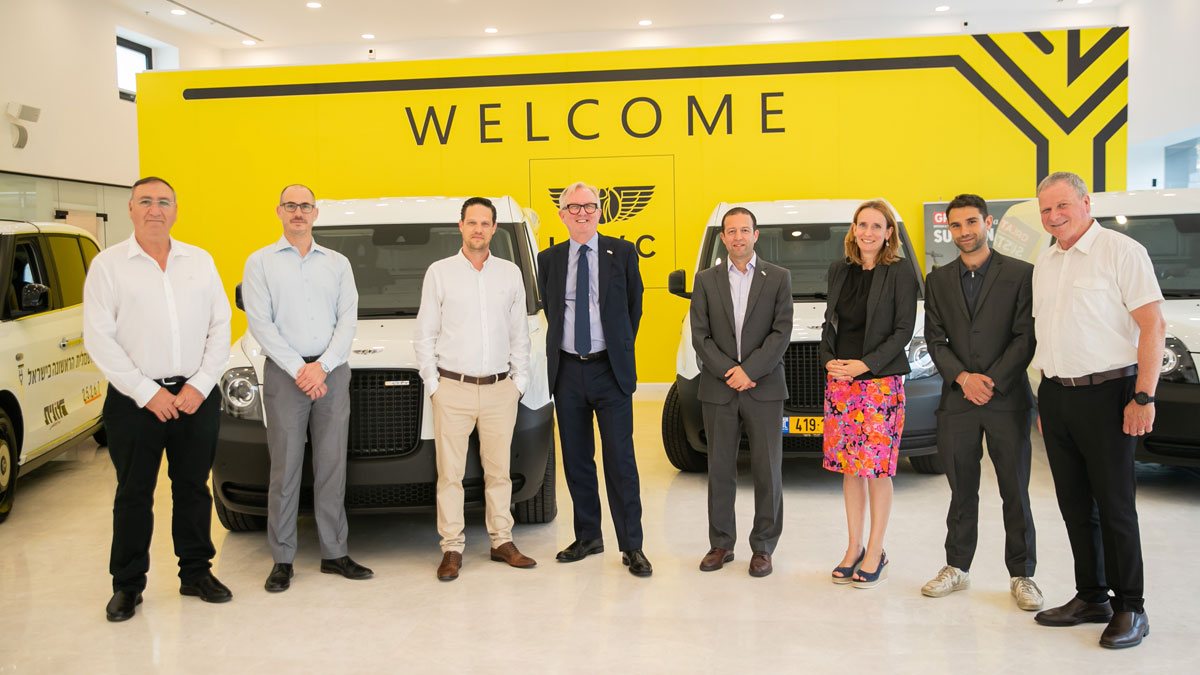 גילי שביט - נשיא ג'נסל, אייזיק לוי - כלכלן משרד התחבורה הבריטי, רוני אייזקסון - מנהלת לשכת המסחר לישראל בשגרירות הבריטית, מתיו סאלטר - ראש לשכת המסחר לישראל בשגרירות הבריטית, לורד איאן אוסטין, אוהד זליגמן, אורן ביאלר - יועמ"ש אי וי מוטורס, ספי דיין - מנכ"ל אי וי מוטורוס. צילום: מורג ביטן