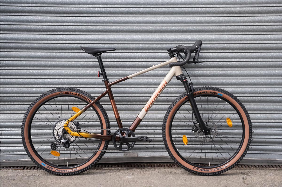 העיצוב משלב מראה רטרו־מודרני עם גימור מוקפד וחלקי ברזל אנודיים בצבע זהב, שמוסיפים תחושת איכות. הגאומטריה מבוססת על גלגלים בגודל 650b עם מרווח לצמיגים עד 2.5 אינץ', זווית ראש רגועה של 69 מעלות ובסיס גלגלים ארוך, התורמים ליציבות ולביטחון בשטח. סטם קצר מוסיף זריזות.