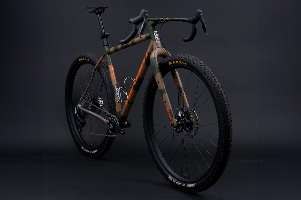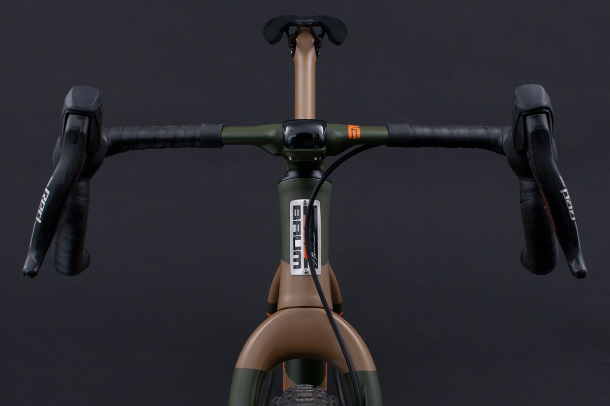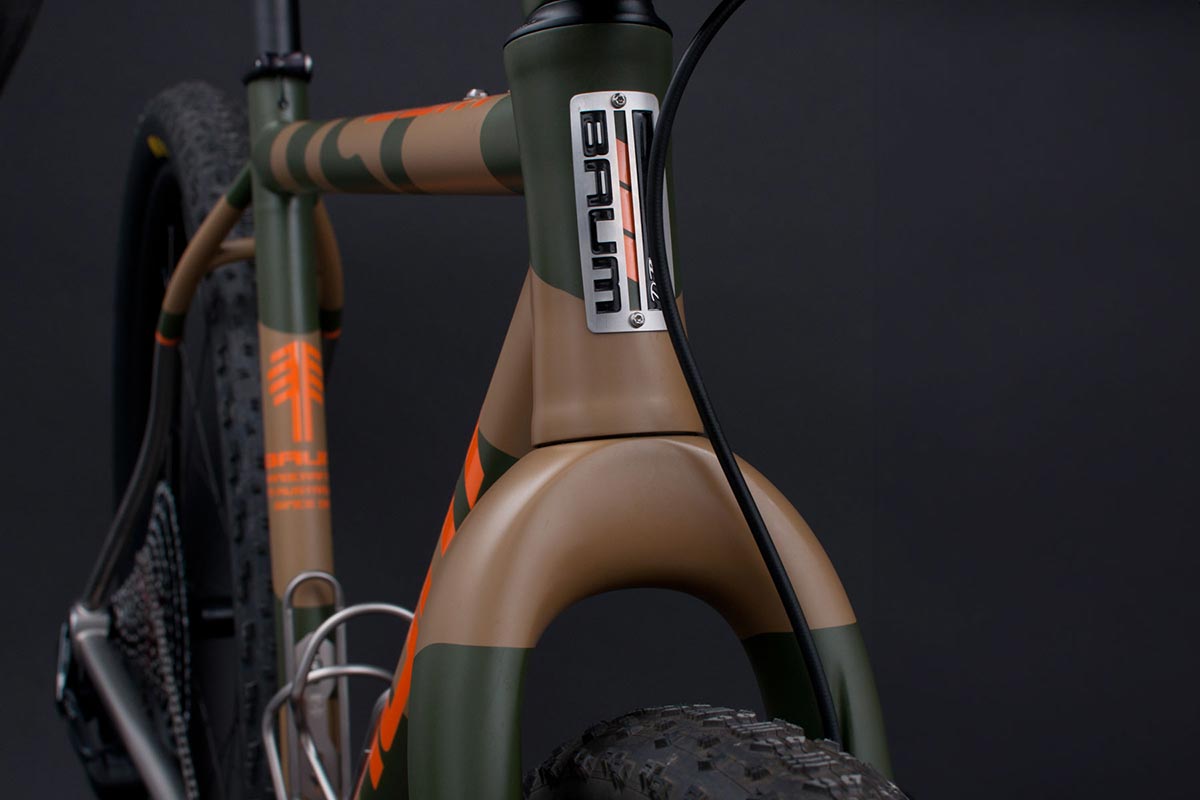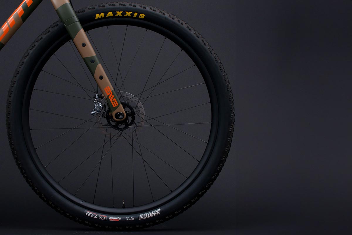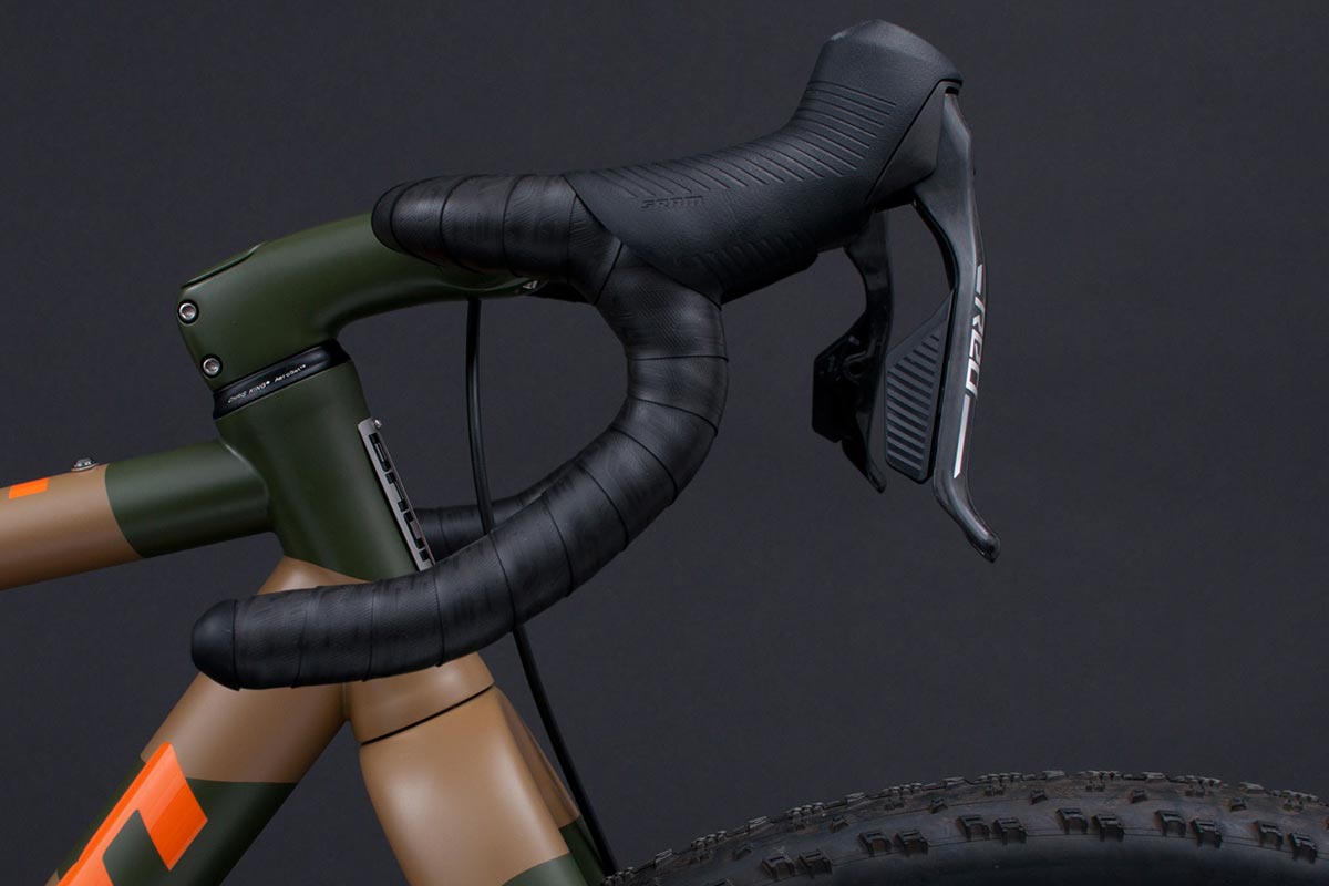 לאופניים מזלג קרבון קשיח של אנווה המותאם לגלגלי 32 אינץ' ומערכת הילוכים המשלבת בין עולמות הכביש לשטח בסגנון מאלט (mullet): ידיות SRAM RED AXS השולטות על מערכת הנעה מסדרת XX SL של אופני ההרים. את החבילה משלימים מוט מושב מתכוונן אלחוטי וקוקפיט קרבון מלא שנצבע באופן ייחודי בהתאם לשלדה בגוון הסוואה מט.