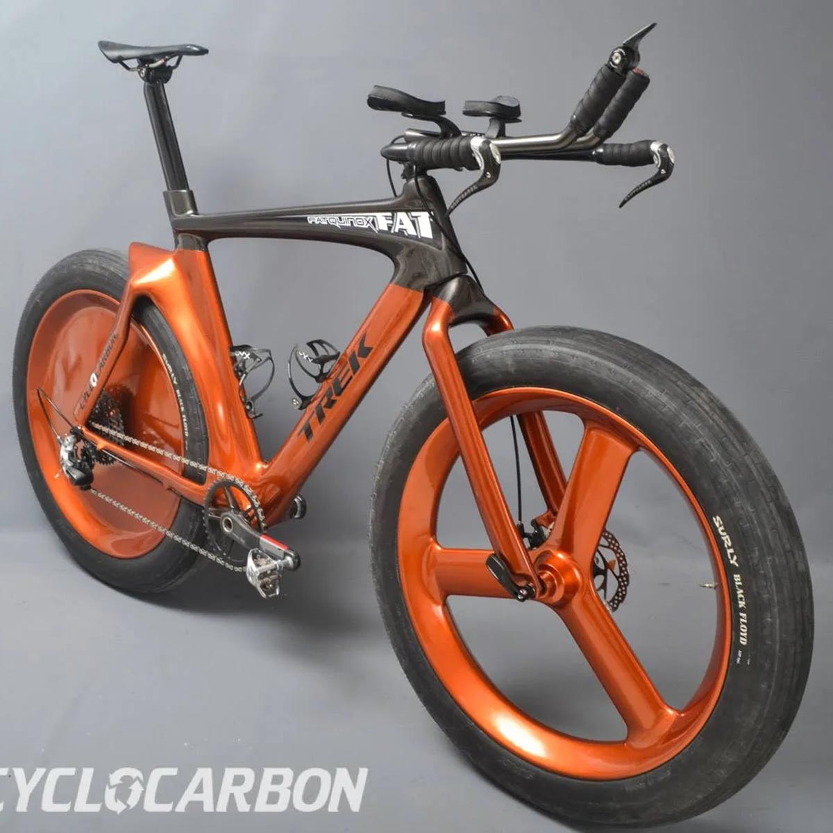 כמעט עשור עבר מאז שנבנה פטקווינוקס (Fatquinox), פרויקט אופניים עם גלגלי ענק על בסיס טרק (Trek Equinox), והוא עדיין אחד מזוגות האופניים המשוגעים והמעניינים ביותר שנבנו בתחום. מדובר בחיבור לא שגרתי בין צמיגים של אופניים "שמנים" לבין שלדה אווירודינמית של אופני מסלול מקצועיים. מאחורי הפרויקט עומד דרו ווילסון (Drew Wilson), מייסד חברת סייקלו־קרבון ((Cyclocarbon, שמתמחה בתיקון מסגרות קרבון והפך את ניסיונו למכונת יצירה יוצאת דופן.