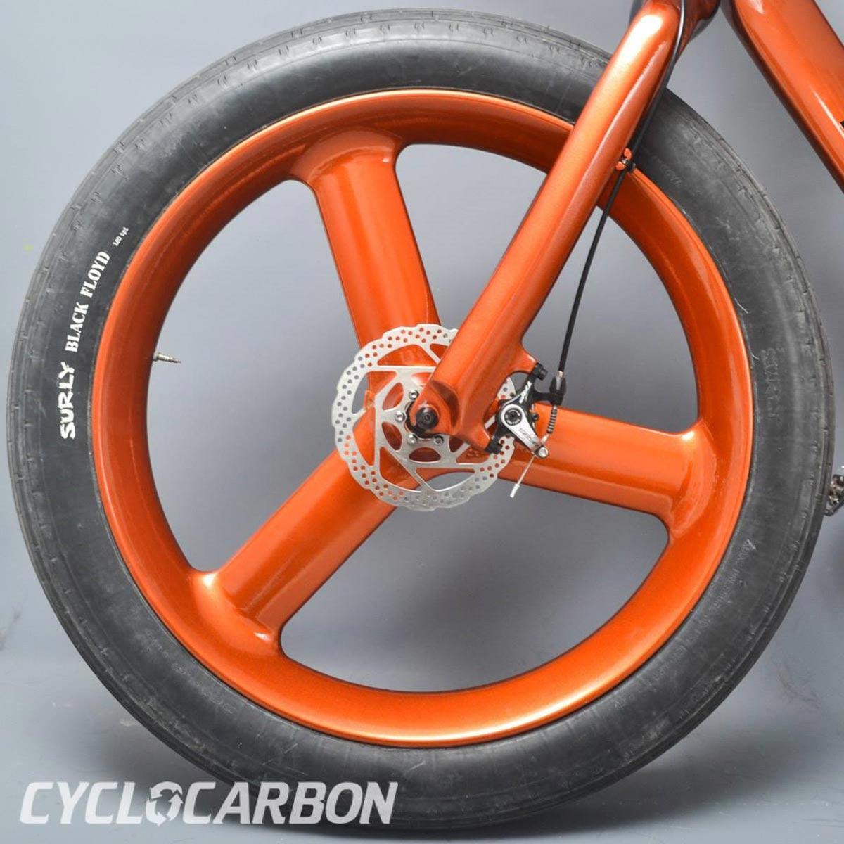 למרות המראה הכבד, ווילסון טוען שהאופניים היו מהירים בהרבה ממה שאפשר לחשוב, בין השאר בזכות סל"ד נמוך בצמיגי שמן ששומר על אחיזה וגלגול יעיל. בחזית האופניים מותקן מזלג קרבר ((Carver "שמן", צבוע להתאמה לשלדה. בגלגלים היצרן הלך עד הקצה: זוג גלגלים עם שלושה חישורים מקרבון, שנבנו במיוחד. הגלגל האחורי מוסווה על ידי דיסק, מה שהופך את העיצוב למרהיב יותר.