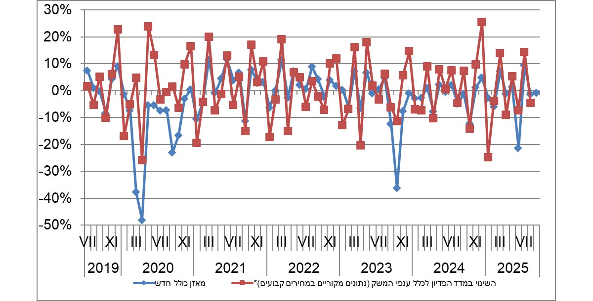 | היקף העבודות החדשות (שטח התחלות הבנייה / היקף ההזמנות) | -0.9 | -8.0 | -15.7 | 0.6 | -1.7 | -16.0 |