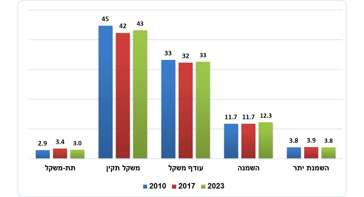 גם בשנים 2010 ו-2017 התמקד הסקר החברתי בבריאות ובאורח חיים. מאז 2010 לא היו שינויים מהותיים באחוזי הנמצאים בעודף משקל ובהשמנה ובאחוז העושים דיאטה.