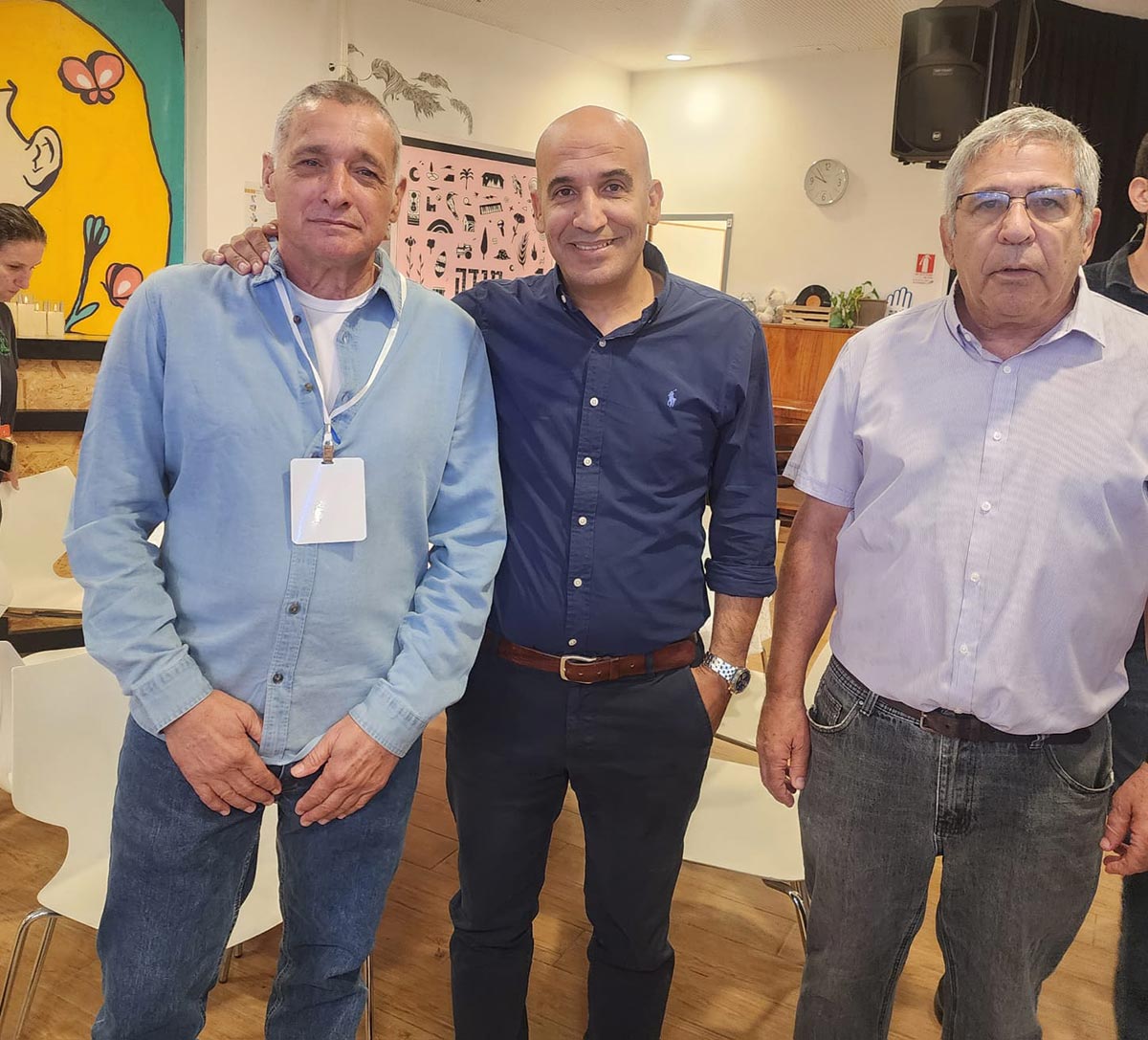 בצילום מימין: אורי דורמן מזכ"ל התאחדות חקלאי ישראל, עמית יפרח מזכ"ל תנועת המושבים ויו"ר התאחדות חקלאי ישראל, ירון בלחסן מנכ"ל ארגון מגדלי הפירות בישראל. צילום: ארגון מגדלי הפירות בישראל