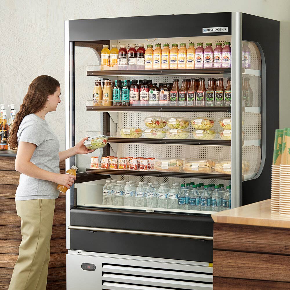 מותג בוורידג'-אייר (Beverage-Air) שמתמחה בפיתוח וייצור של פתרונות קירור מוסדיים, מציע מקרר פתוח למרחבים מסחריים. עם המקרר הזה יכולות חנות מזון או מסעדה להציג את כל המבחר והמגוון של המשקאות או מוצרי מזון בהישג יד. למקרר הגדול תאורת לד בהירה, מדפים שאפשר להתאים במגוון מצבים ומקום למחירים מודפסים, לפיכך כל הפרטים על המוצר תמיד יהיו מול העיניים של הלקוח.