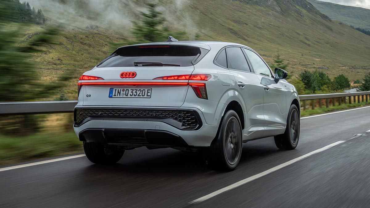 תצורת הספורטבק של הדור השני של אודי Q3 משלבת את החוזקות של SUV עם אסתטיקה של קופה. קו הגג, היורד כלפי מטה מעמוד A, נמוך ב־42 מילימטרים מזה של גרסת ה־SUV, מה שמעניק לרכב מראה ספורטיבי יותר וצללית דינמית יותר. לחלק האחורי עיצוב נקי עם תוספת פס תאורת LED רציף ולוגו טבעות מואר. הדיפיוזר משולב בפגוש המוגבה.