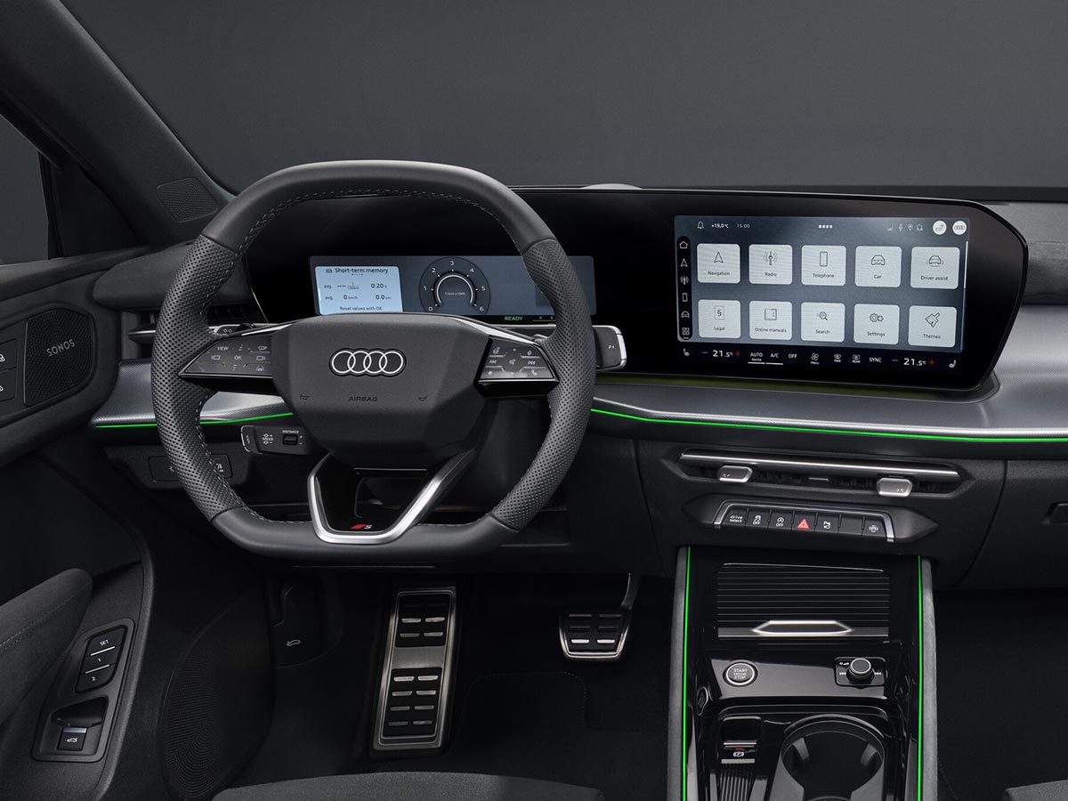 תצוגה פנורמית עם לוח מחוונים בגודל 11.9 אינץ' ומסך מגע MMI בגודל 12.8 אינץ' יוצרים במה דיגיטלית. עיצוב מעוגל של מסך המולטימדיה יוצר פריסה של תא נהג המכוונת לנהג. תצוגה עילית למידע חשוב משלימה את התצוגות הדיגיטליות.