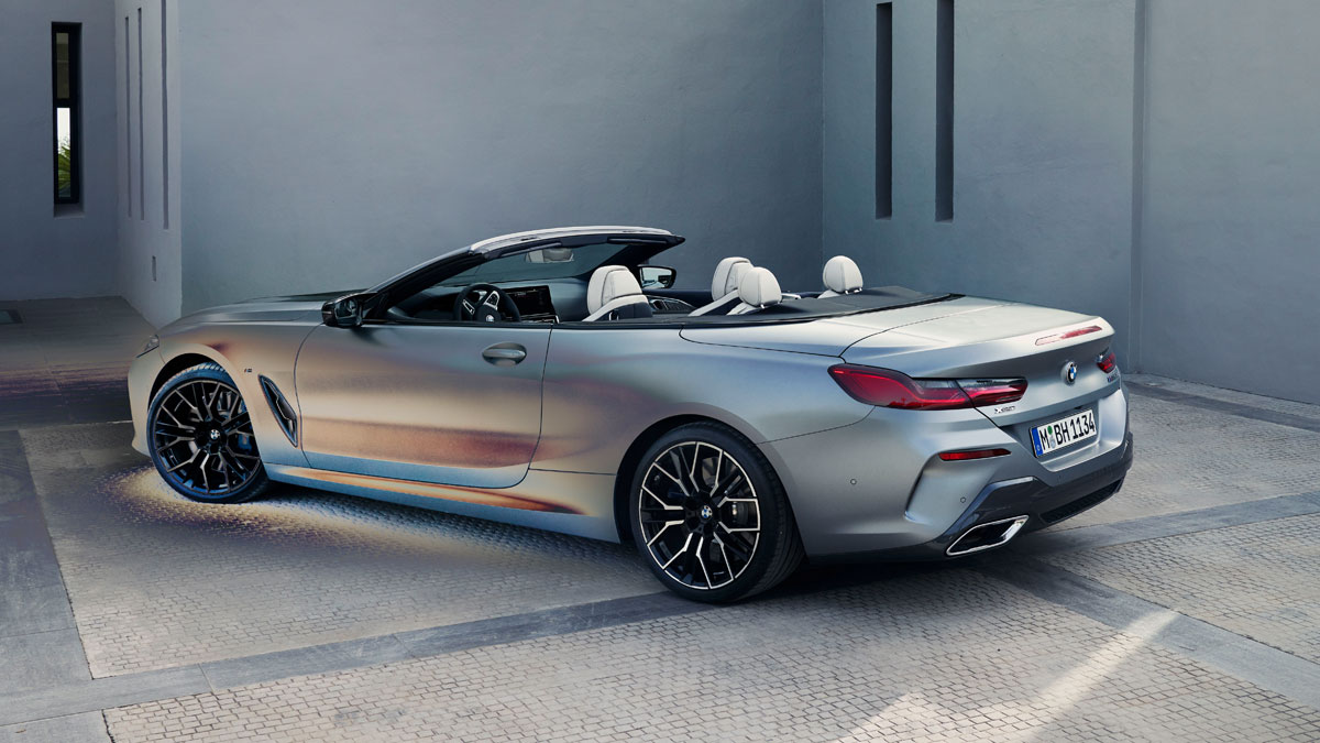 גריל הכליות של המותג קיבל עיצוב מחודש עם חישוקי סגסוגת קלה M 20 אינץ' בשילוב מערכת בלימה M Sport עם קליפרים כחולים. בסדרה 8 החדשה פנסי חזית אדפטיביים בטכנולוגיית LED וארבעה צבעי חוץ חדשים לבחירה: גוני אפור, ירוק, כחול או כחול Frozen.