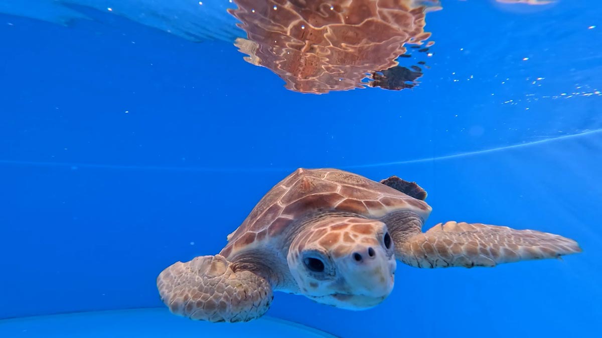 צב ים חום צעיר בבריכת השיקום במרכז ההצלה. צילום: ארז ארליכמן, רשות הטבע והגנים