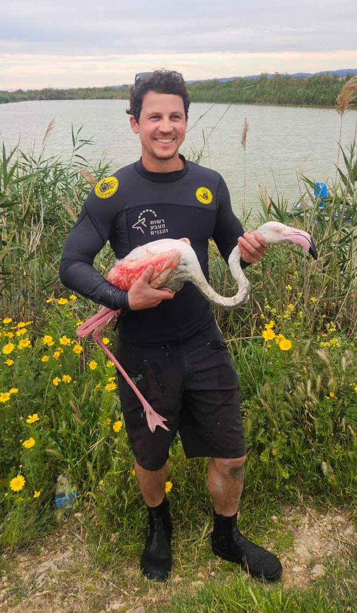לאחרונה התקבלה פנייה ממנהל בריכות הדגים בקיבוץ נחשולים ואשר אבגי, תושב הקיבוץ, שזיהו פלמינגה פצועה התקועה באחת הבריכות. מור מאורי סולומון, מנהלת הגן הלאומי תל דור ברשות הטבע והגנים, הזעיקה למקום את פקחי היחידה הימית איליה בסקין ושי קבסה, שהגיעו במהירות, זיהו כי מדובר בנקבה וחילצו את הפלמינגה באמצעות סאפ.