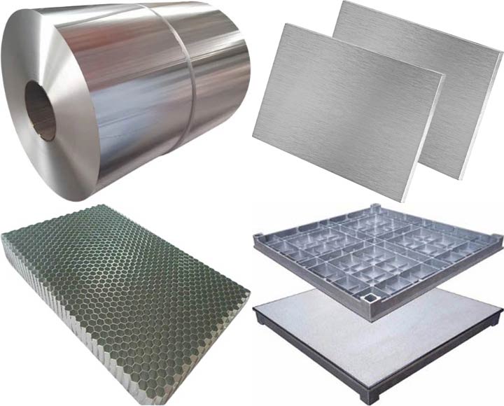 לדוגמה: פלטות אלומיניום, לוחות אלומיניום או אריחי אלומיניום, רדידי אלומיניום שטוחים, לוחות בצורת Honeycmb, פלטות אלומיניום המורכבות מפרופילי אלומיניום ברוחב של יותר מ־370 מ"מ שרותכו יחדיו, וכדומה אשר אינם מסווגים בפרט מכס 7606. |