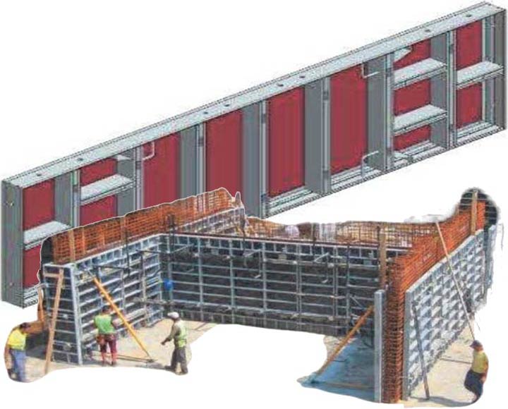 תבניות מאלומיניום עם לביד מעץ המיועדות ליציקות בטון. |