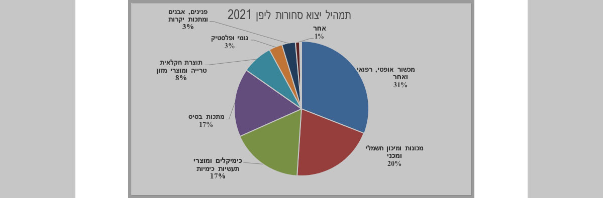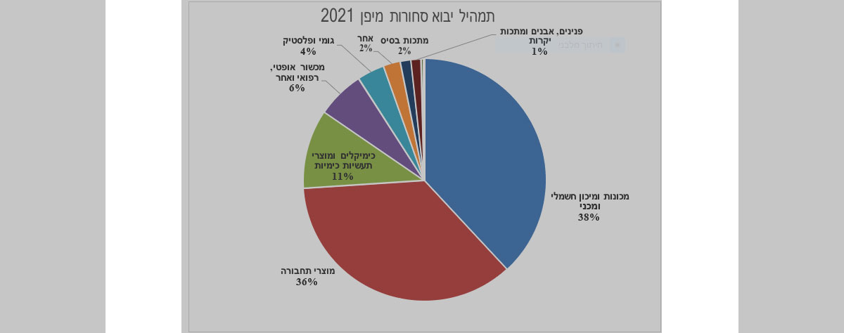 | אחוז מתוך סך יצוא/יבוא | 0.95% | 2.86% | 1.21% | 2.97% | 0.96% | 2.34% | 1.10% | 2.45% | 1.02% | 2.08% |