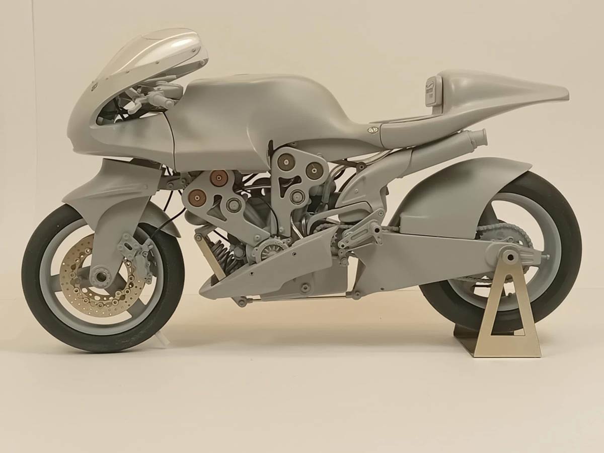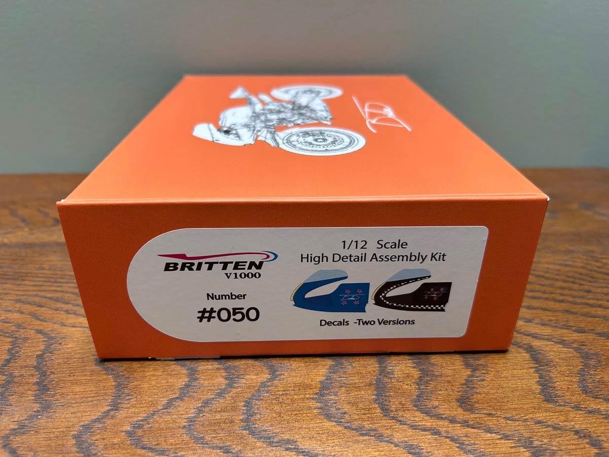 לאחר המתנה ארוכה, חברת בריטן השיקה ערכת דגם בקנה מידה של V1000, ברמת פירוט גבוהה במיוחד. לא מדובר בצעצוע או בדגם מדף פשוט אלא בפרויקט בנייה של ממש, הכולל יותר מ־200 חלקים נפרדים, יותר מ־150 מדבקות ו־25 עמודי הוראות הרכבה. הדגם מצריך השקעת זמן, סבלנות ומחויבות - בדיוק כמו האופנוע המקורי.