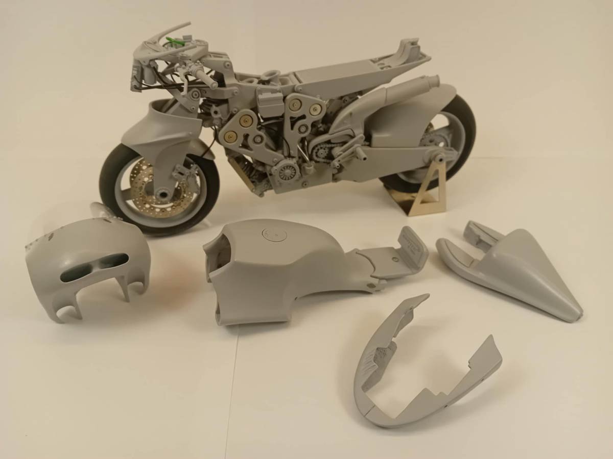 המנוע, חלקי השלדה ופרטי סיבי הפחמן שוחזרו בקפדנות. לערכה שתי אפשרויות צבע, ואפשר לבחור בין חיקוי מראה סיבי פחמן בפנלים הרלוונטיים לבין צביעה שחורה. כל דגם ממוספר באופן אישי, פרט סמלי אך הולם למוצר הנושא את השם בריטן. גם פרטים קטנים כגון הקליפרים של הבלמים של ברמבו (Brembo), זכו לרמת גימור שמדגישה את הדיוק וההשקעה.