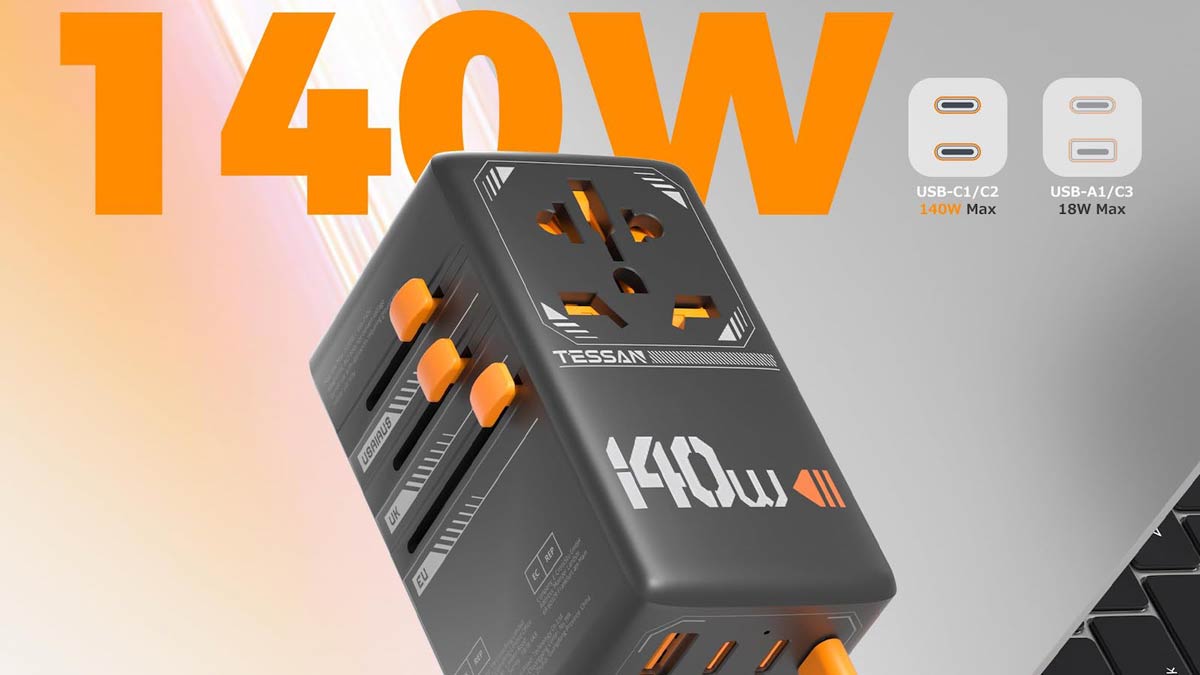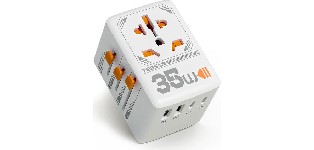 למתאם עוצמה של 35 וולט לטעינה מהירה של אביזרים וכלים ניידים. יש חיבור חשמל AC סטנדרטי אחד, שלוש יציאות USB-C ושתי יציאות USB-A. ריבוי החיבורים מאפשר להטעין עד שישה מכשירים בו-בזמן. המתאם הוורסטילי שוקל 154 גרם, וממדיו הקומפקטיים חוסכים מקום במזוודה.