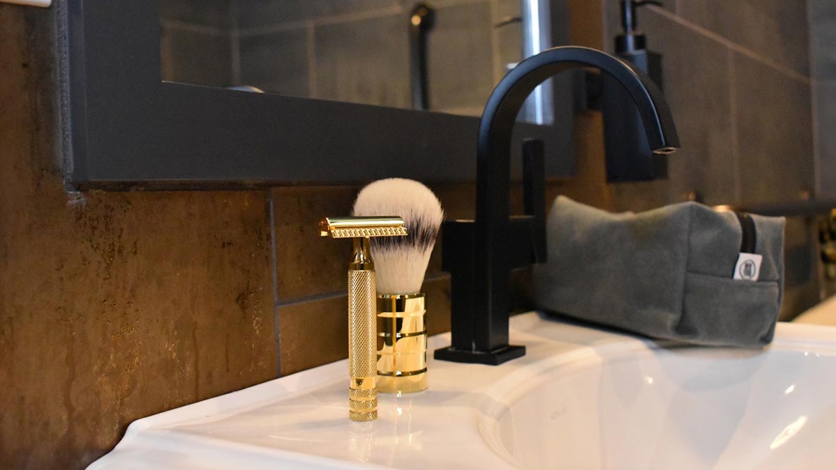הסכין עשוי כולו ממתכת ומיוצר בארצות הברית בתהליך מדויק וקפדני. כל רכיב בנוי לעמוד לאורך שנים בשימוש אינטנסיבי, מה שמבדיל אותו ממוצרי גילוח חד־פעמיים המיוצרים מפלסטיק. הציפוי המוזהב מוסיף מראה יוקרתי ועמידות מוגברת לקורוזיה ושחיקה, לפיכך המכשיר נראה חדש גם לאחר שנים של שימוש יומי.