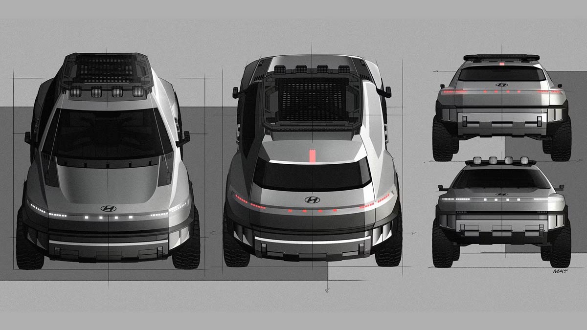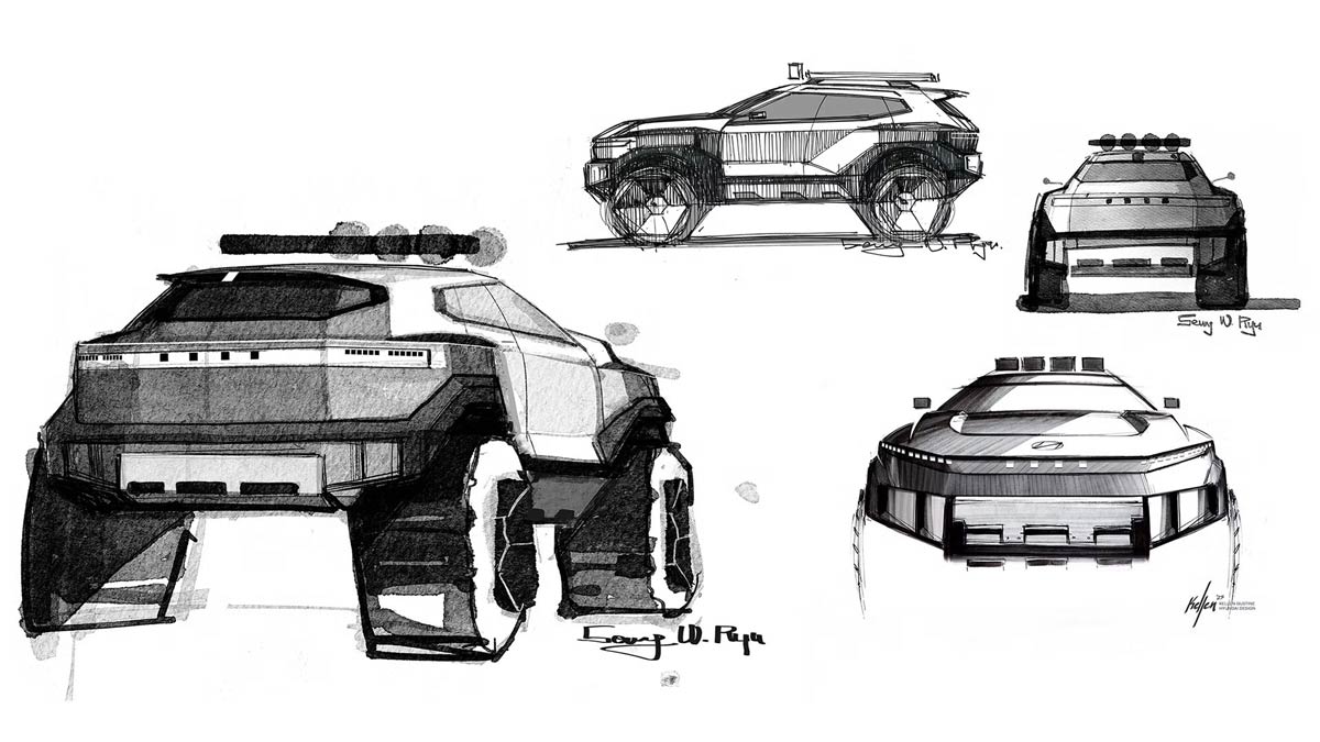 סקיצות הקונספט מציגות רכב קטן עם נוכחות מובהקת: צמיגים שנראים בגודל 50 אינץ', מוט אורות על הגג ומרכב שמצריך כנראה סולם נשלף כדי להיכנס אליו. לא במקרה, הדגם לא עוצב בקוריאה אלא במרכז הפיתוח האמריקני של יונדאי באירוויין שבקליפורניה - מרכז המתמחה בפיתוח קונספטים ובבדיקות ואימות הנדסי בארה"ב.
